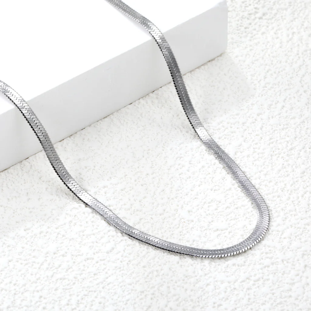 Sleek and modern, the Fluid Blade Necklace flows like liquid metal against your skin. Crafted from stainless steel with a smooth, blade-like herringbone finish, this piece offers a refined edge that’s perfect for layering or wearing solo. With its waterproof, tarnish-proof, and hypoallergenic design, it’s a versatile must-have that combines durability with effortless style.