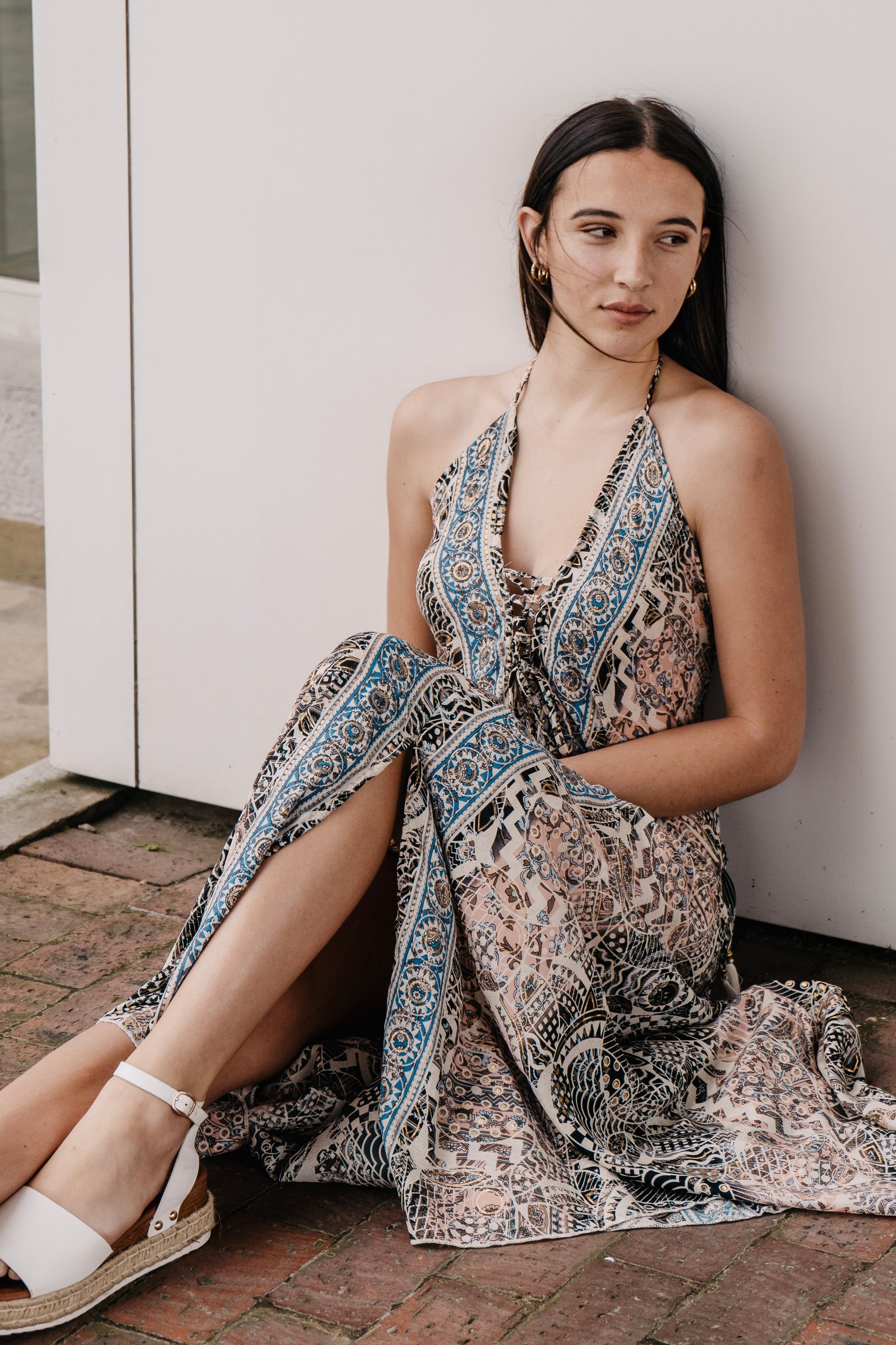 Embrace effortless elegance with our Indian Silk Viscose Dress, featuring a stunning bohemian design. Crafted from a luxurious silk fabric blend with a golden thread, this dress boasts a tie-neck detail and an elasticated back for a perfectly defined silhouette. The flowy shape drapes beautifully, making it a versatile choice for any occasion. Simply slip it on for a day at the beach with sandals, or dress it up with heels for a formal evening out. From casual to chic, this dress has you covered from day to night.